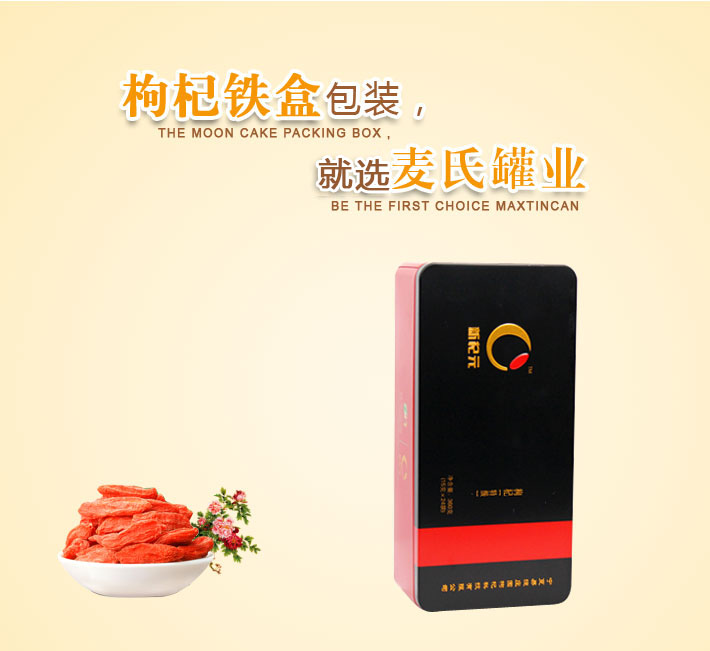 定做350g枸杞鐵盒子,長方形黑枸杞包裝盒,食品鐵盒加工廠