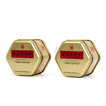 安宮牛黃丸套裝鐵盒(安宮牛黃丸包裝鐵盒,馬口鐵安宮牛黃丸盒,安宮牛黃丸鐵皮盒生產)麥氏罐業!安宮牛黃丸套裝鐵盒延展性好,印刷精美,不易破損,各種形狀均可以定制,適合包裝安宮牛黃丸、海狗丸等中藥丸產品。