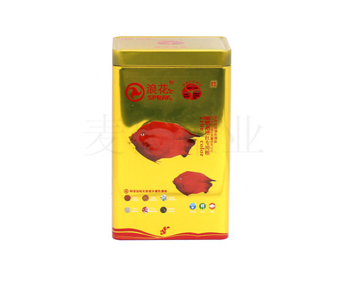 此款魚飼料鐵盒為麥?zhǔn)瞎迾I(yè)為廣大客戶推出的魚飼料鐵盒,此款鐵盒的規(guī)格為120*95*149mm。鐵盒的印刷工藝為CMYK+1專,外過水性亮光油,內(nèi)過符合國家規(guī)定的金油,客戶可根據(jù)自身產(chǎn)品的需求選擇啞油、皺紋油、爆炸油等印刷工藝。