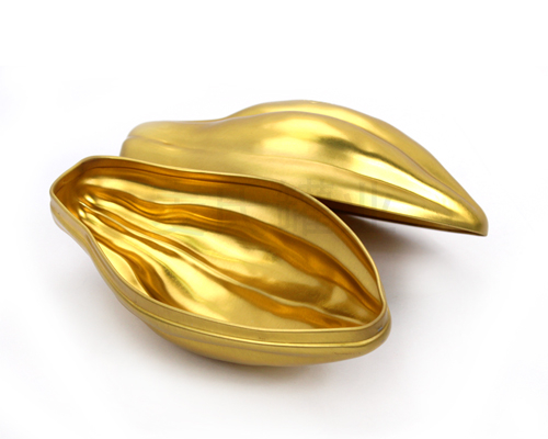 形狀為創意的瓜形造型打造,規格為185mm*100mm*95mm ,可滿足包裝500g不等的食品、茶葉、禮品等產品。其結構為兩片鐵罐,鐵盒全身為拉伸工藝成型制作。這款瓜形禮品鐵盒子擁有創意的鏤空網狀設計,