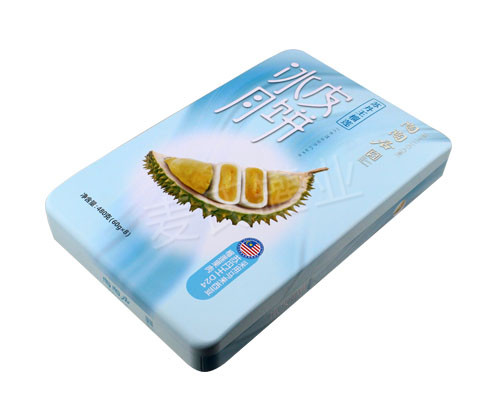 這款六個裝月餅鐵罐子,鐵盒整體結構為經典又不失大氣的長方結構,蓋子打開方式為外卷線天地蓋,鐵盒表面作有雕刻工藝設計,可令圖文部分立體化形式表現出來,增加了鐵盒包裝的視覺感。
