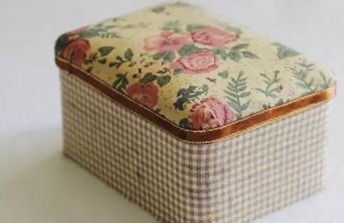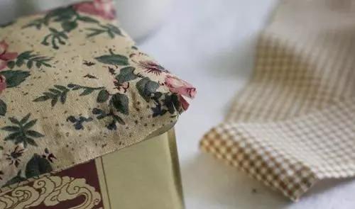 7、在盒蓋邊緣處粘上自己喜歡的織帶,盡量選取與表布顏色靠近的同類色系。
