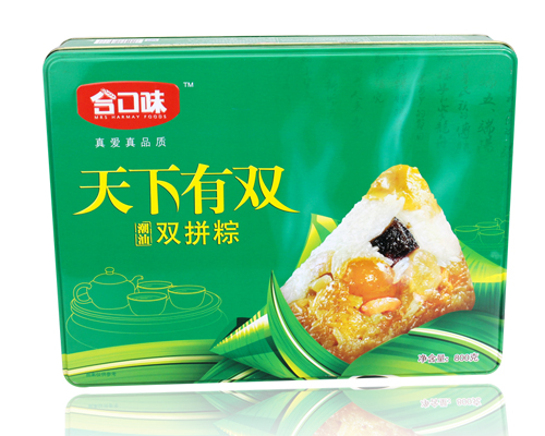 這款八角形三全粽子鐵盒,采用專色印刷工藝,八角形外型設計,新穎創意。馬口鐵皮制造,能有效地保護盒內粽子不受外界的影響,延長粽子的保質期限。